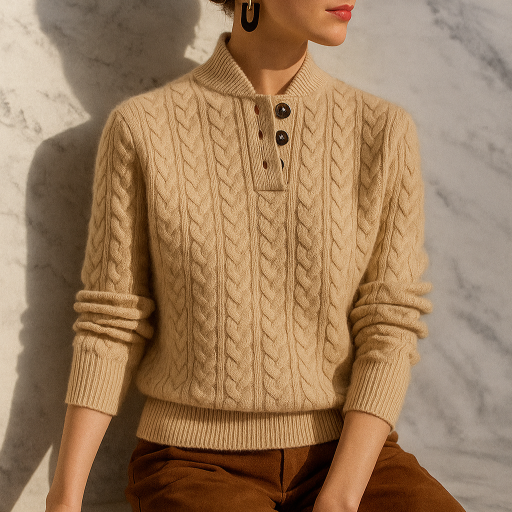 Odkryj naszą ciepłą i stylową bluzę z dzianiny swetrowej z domieszką wełny, która zapewnia doskonały komfort na co dzień w chłodniejsze dni. Luźny krój i stójkowy dekolt sprawiają, że jest to wszechstronny element garderoby, który łatwo zestawisz z dżinsami lub dopasowanymi spodniami. Idealna dla kobiet ceniących wygodę i modny wygląd, ta bluza to must-have na każdą jesień i zimę. Ciesz się połączeniem nowoczesnego designu i funkcjonalności w tym ponadczasowym modelu.