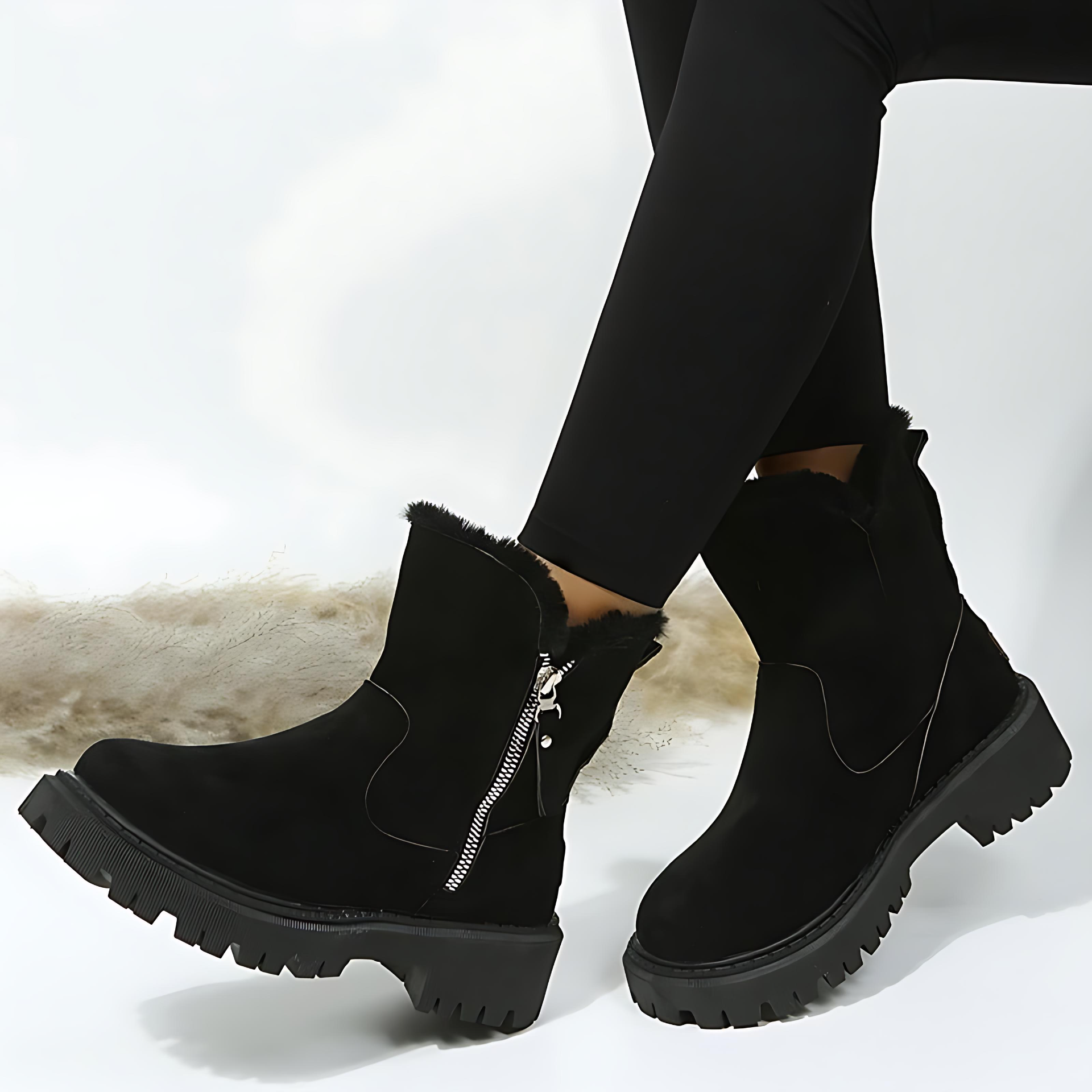 Damska - Botki do kostki z zamszu - Ciepłe zamek błyskawiczny - Modny wybór na każdą okazję