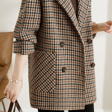 Damska - Długa marynarka w kratę - Klasyczny styl na jesień - Modny wybór