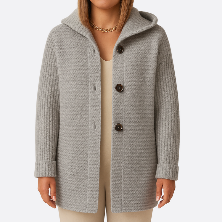 Damska - Długi kardigan - Kapturem i guzikami - Stylowy i wygodny - Idealny na chłodne dni