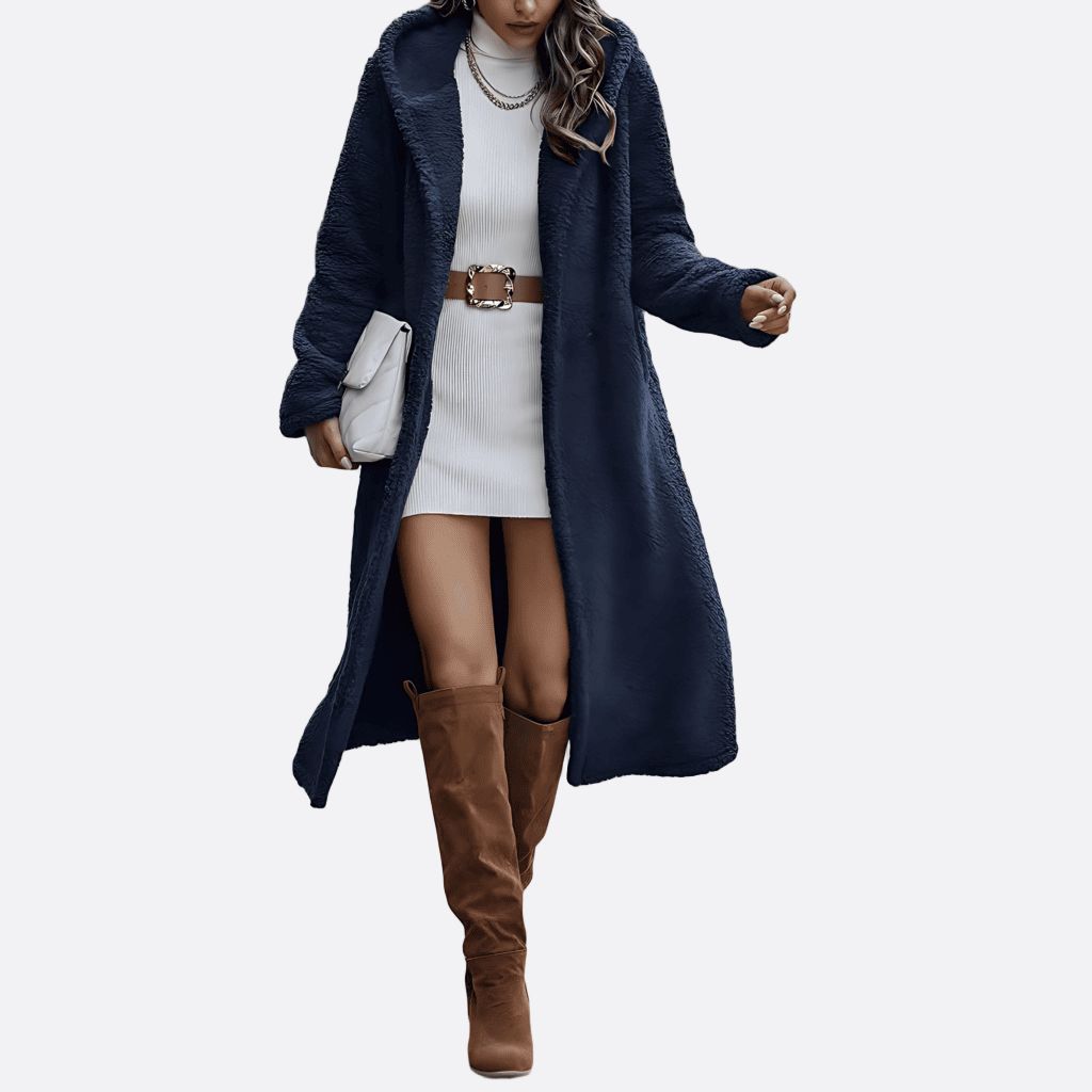 Damska - Długi płaszcz z kapturem - Ciepły i stylowy design - Idealny na chłodne dni