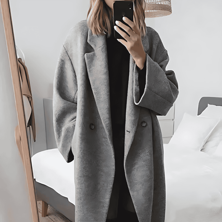Ten długi płaszcz zimowy dla kobiet łączy eleganckie krawiectwo z nowoczesnym stylem. Wyposażony w strukturalną klapę z wycięciem oraz subtelne zapięcie na guzik, zapewnia estetyczny i profesjonalny wygląd. Wydłużona długość dostarcza dodatkowego ciepła, a dopasowany krój podkreśla sylwetkę, co czyni go idealnym wyborem do pracy i na wieczorne wyjścia. Dostępny w klasycznych kolorach, ten płaszcz jest wszechstronną opcją na zimne dni.
