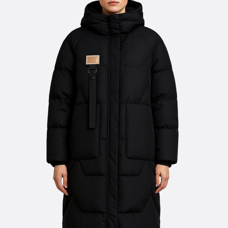 Damska - Długi Puchowy Płaszcz Zimowy - Ciepły i Stylowy - Idealny na Zimowe Dni