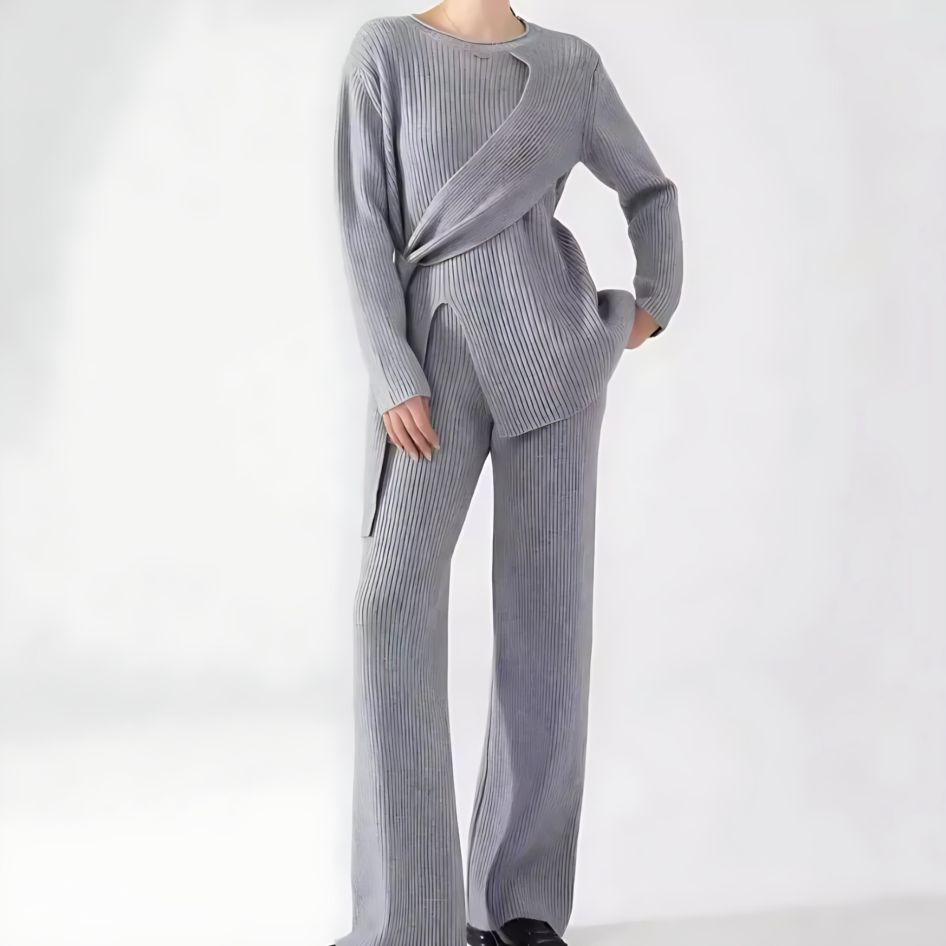 Damska - Dwuczęściowy komplet - Miękki sweter i wygodne spodnie z dzianiny - Idealny na co dzień