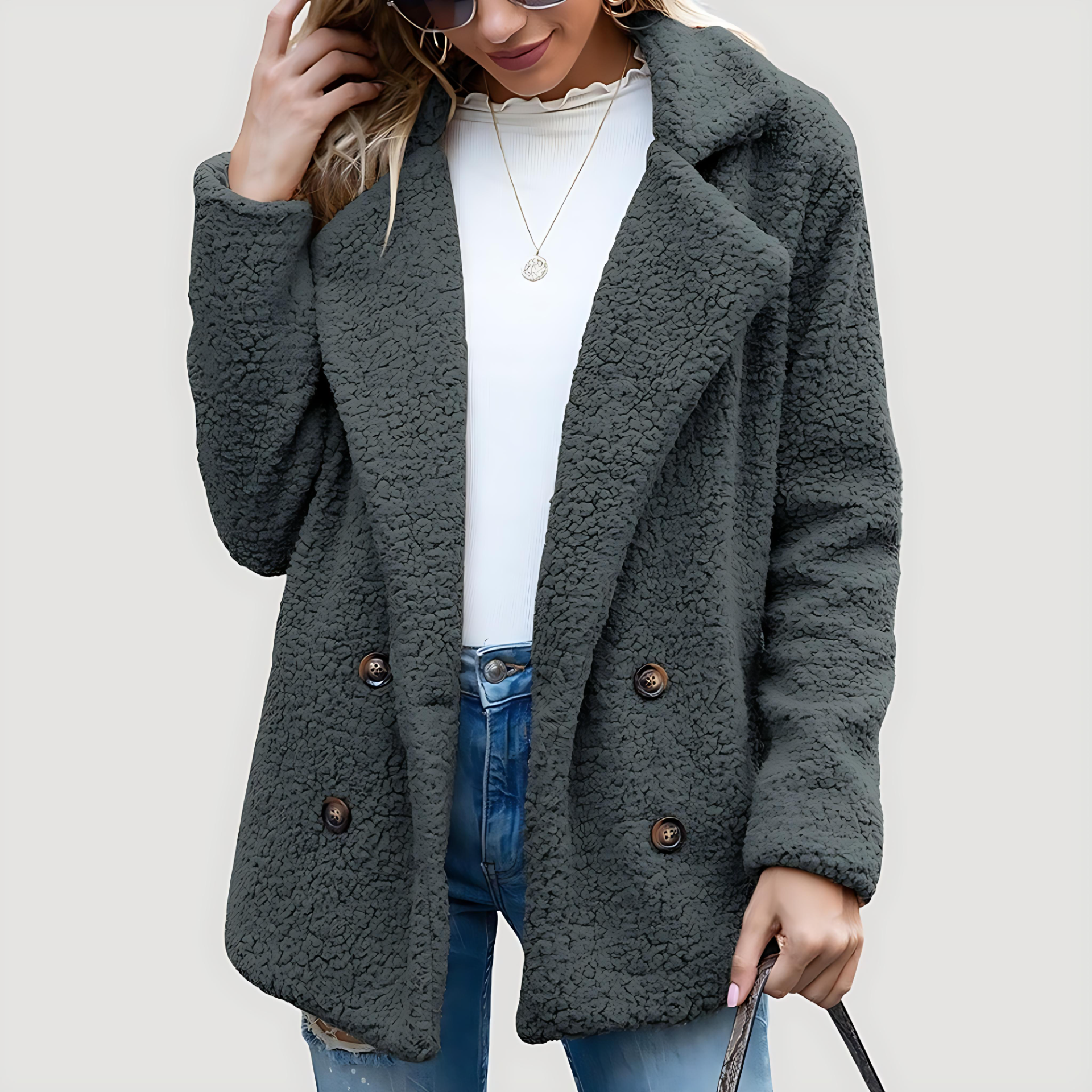 Damska - Dwurzędowa kurtka polarowa - Styl zimowy - Elegancki design