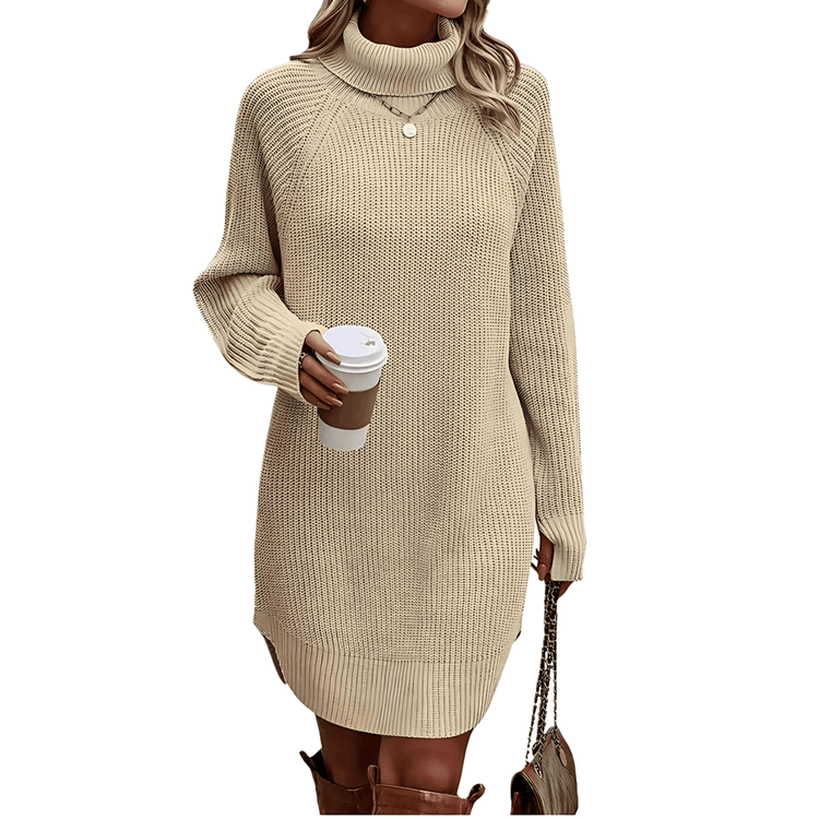 Damska - Dzianinowa sukienka z golfem - Długi rękaw - Komfortowy materiał - Elegancki styl