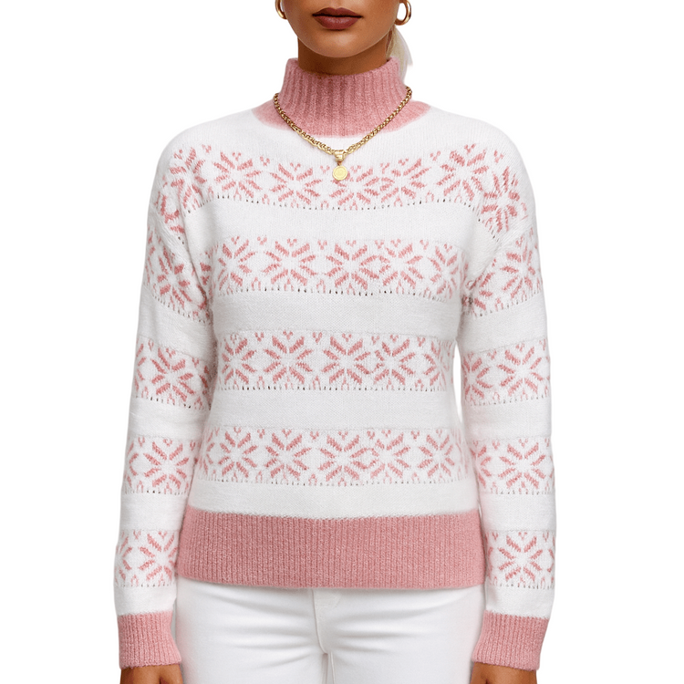 Damska - Dzianinowy sweter - Motywem płatków śniegu - Przytulna mieszanka wełny - Zimowa moda na chłodne dni