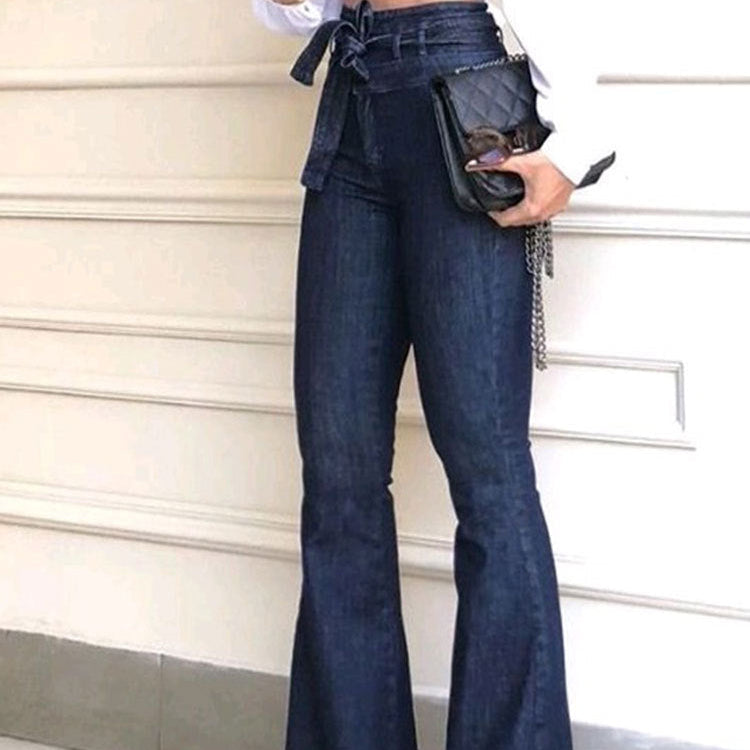 Damska - Dżinsy Bootcut - Wysoką talią i paskiem - Stylowe i komfortowe - Idealne na każdą okazję