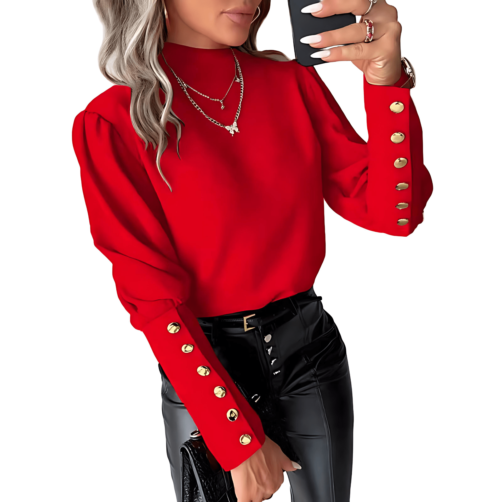 Damska - Elegancka bluzka - Bufiastymi rękawami - Złote guziki - Stylowa moda na każdą okazję