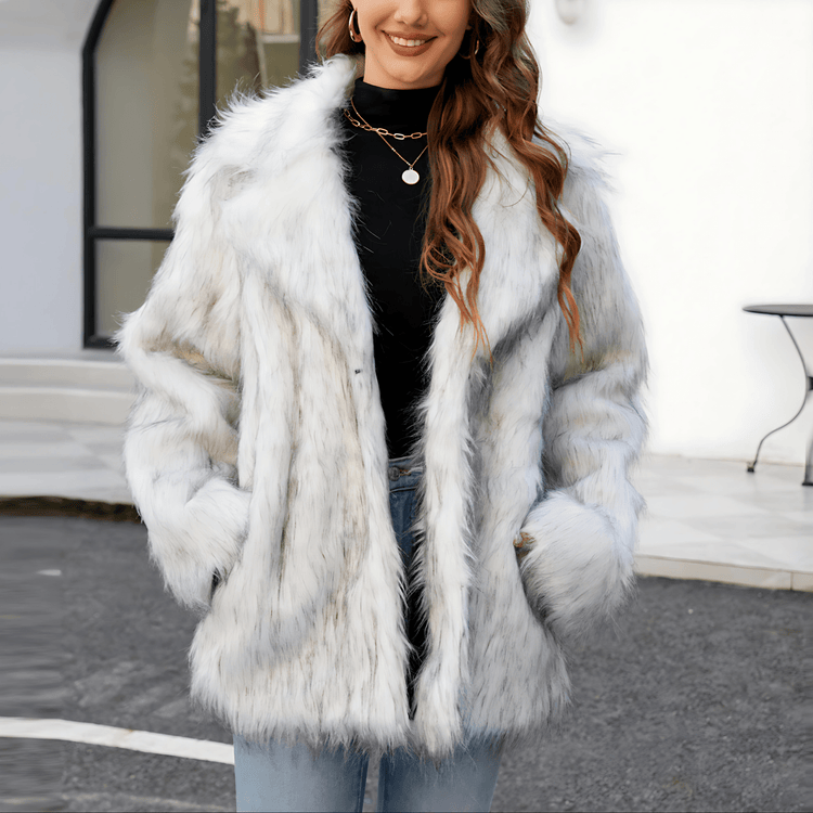 Damska - Elegancka kurtka - Sztucznego futra - Miękki kołnierz - Stylowa odzież na chłodne dni