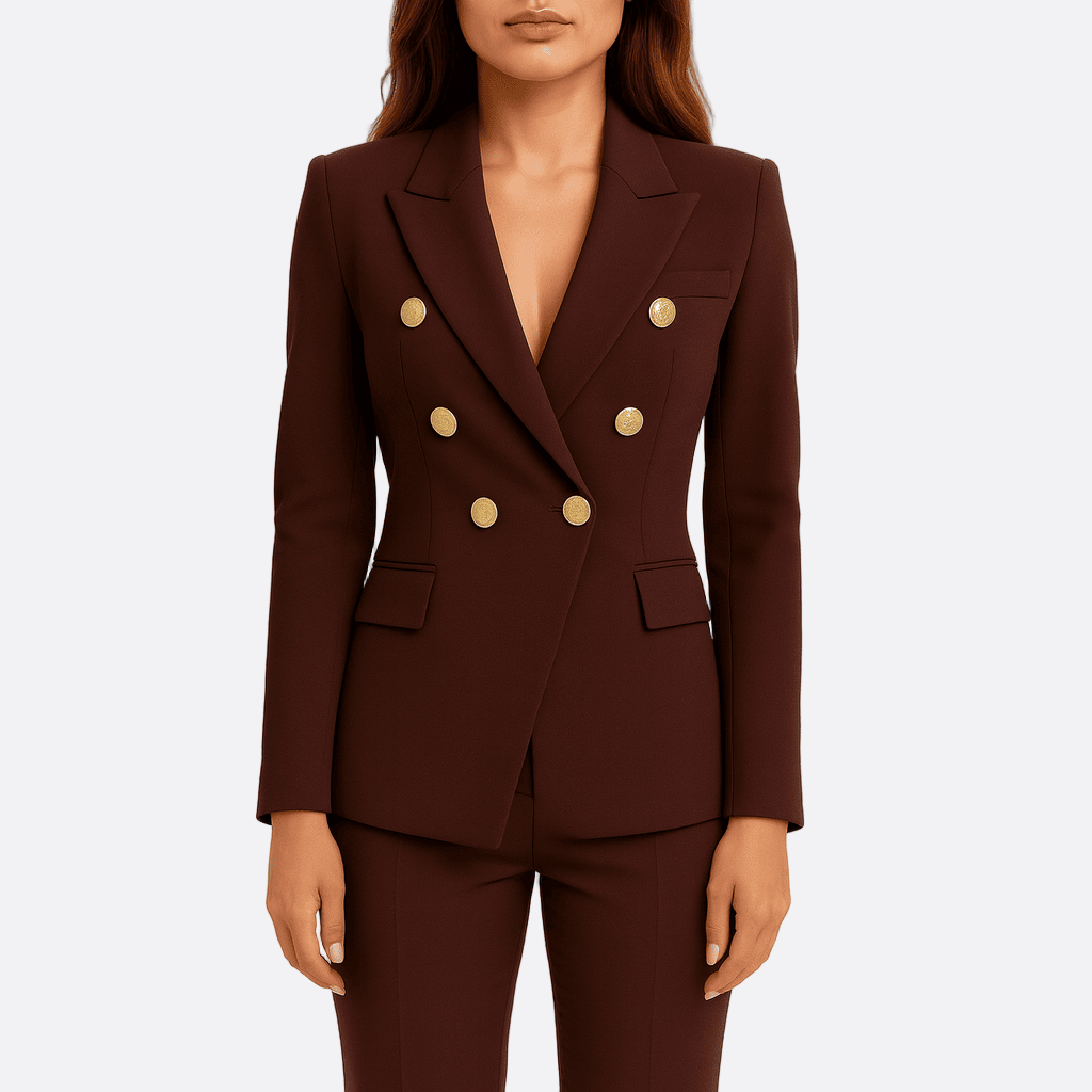 Damska - Elegancka marynarka i spodnie - Dwurzędowy styl - Idealny strój na każdą okazję