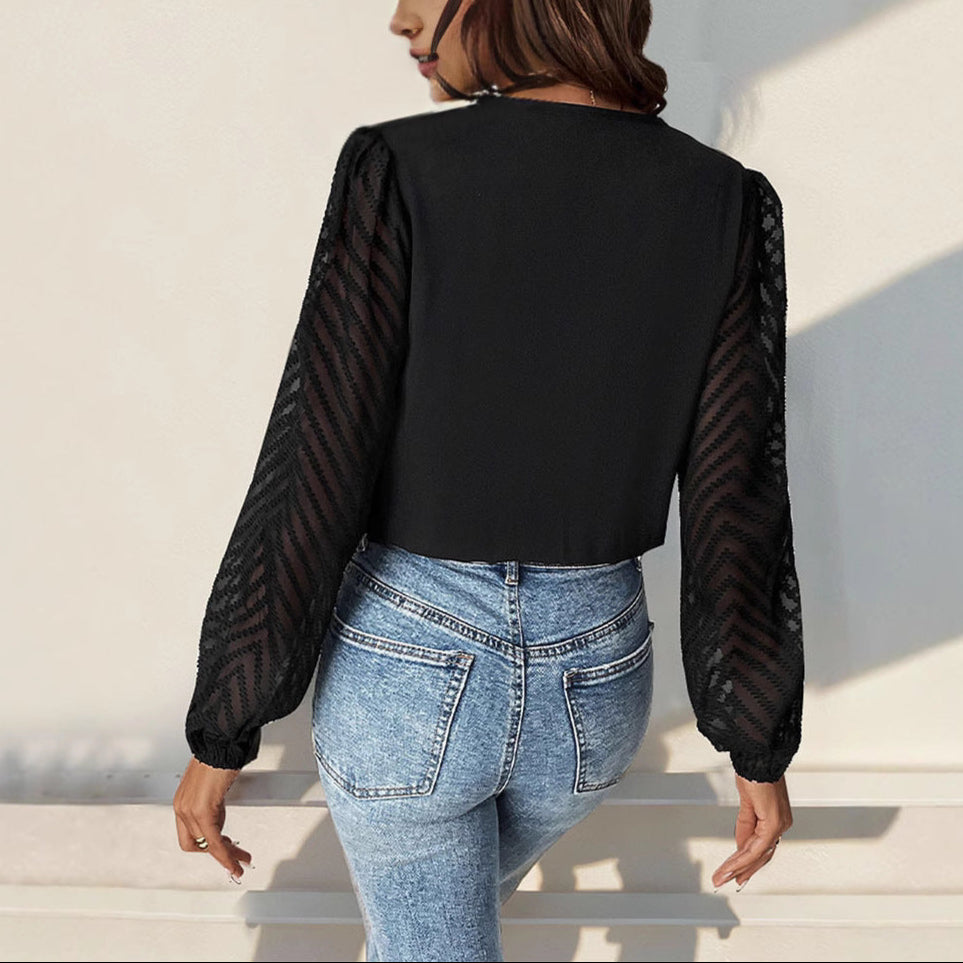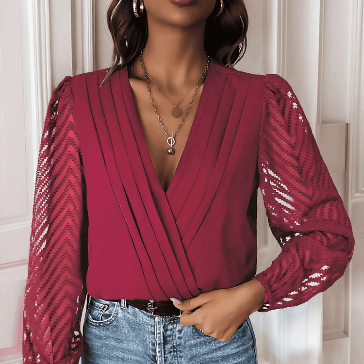 Damska - Eleganckie body z głębokim dekoltem - Szpic i obszernymi rękawami - Idealne na wyjątkowe okazje