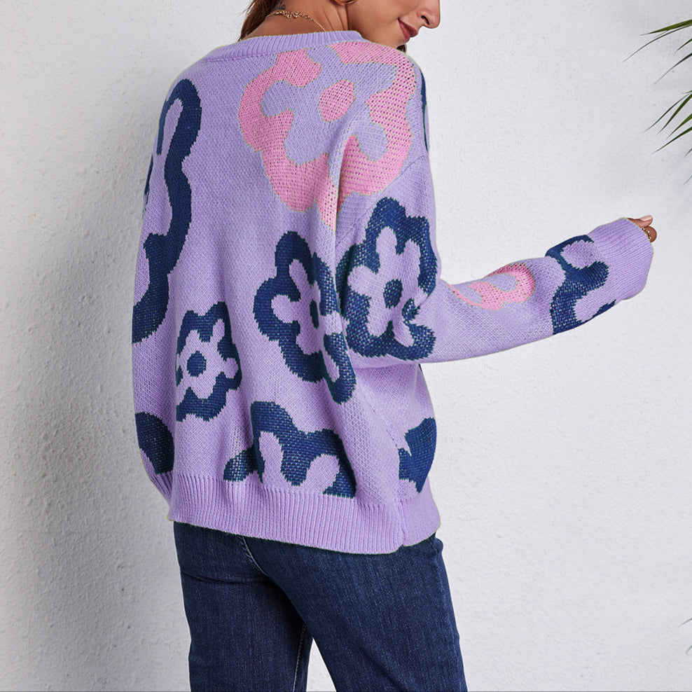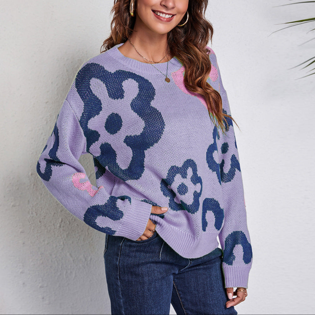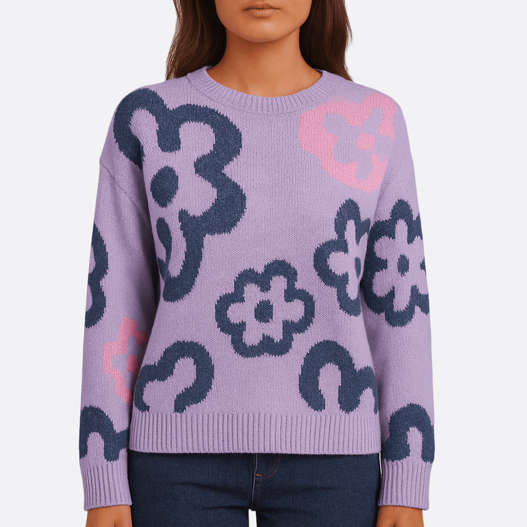 Damska - Fioletowa bluza - Kwiatowym wzorem - Stylowa i wygodna - Idealna na co dzień