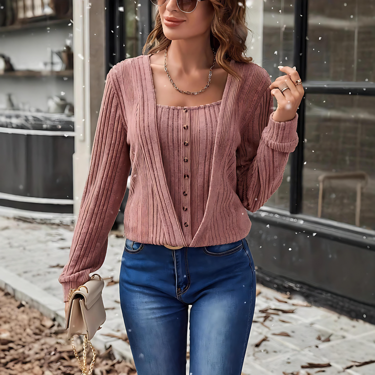 Damska - Kardigan - Głęboki dekolt w szpic - Zapięcie na guziki - Stylowy i modny