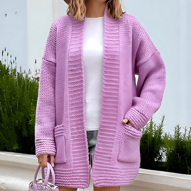 Damska - Kardigan - Prążkowana dzianina - Długi rękaw - Styl oversize - Modny wybór na każdą okazję