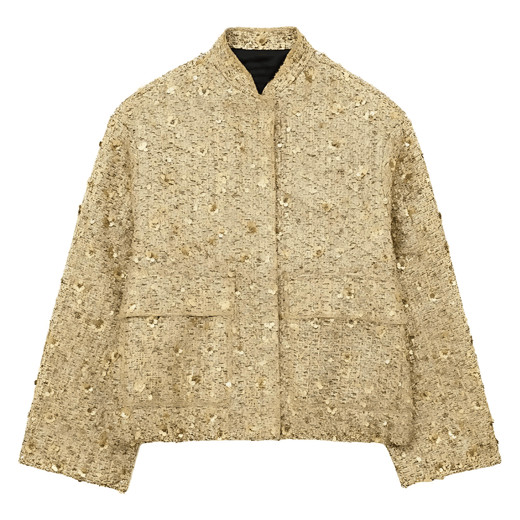 Damska - Krótka kurtka - Lekka z cekinami - Stylowa i zabawna - Idealna na każdą okazję
