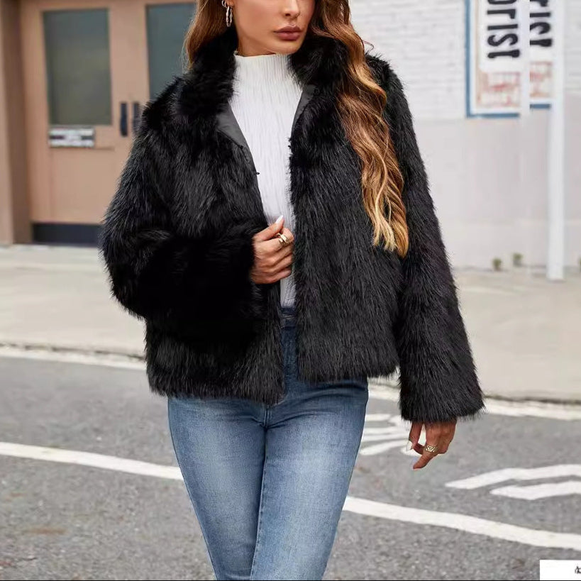Damska - Krótka Kurtka - Sztucznego futra - Modny kołnierz - Stylowa odzież na chłodne dni