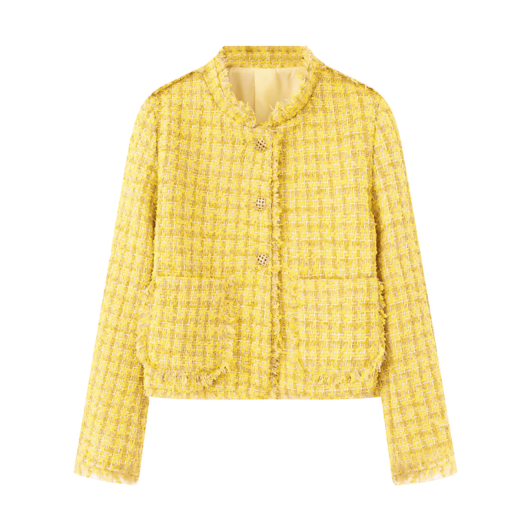 Damska - Krótka kurtka - Tweed strukturalny - Stylowy wybór na każdą okazję