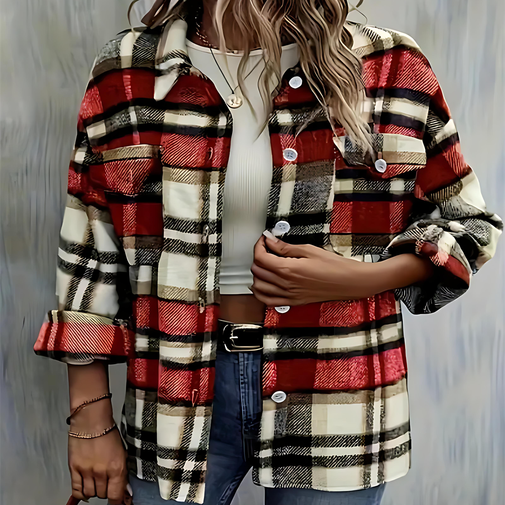 Damska - Kurtka koszulowa w kratę - Casualowa, wygodna i stylowa - Idealna na co dzień