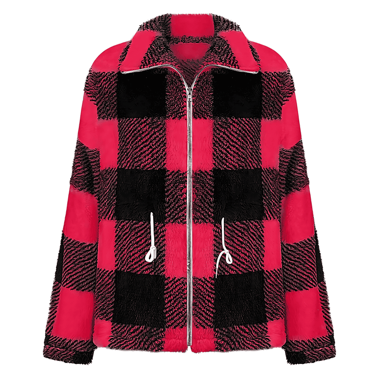 Damska - Kurtka pluszowa - Kratkę z zamkiem błyskawicznym - Stylowa i komfortowa odzież na każdą porę roku