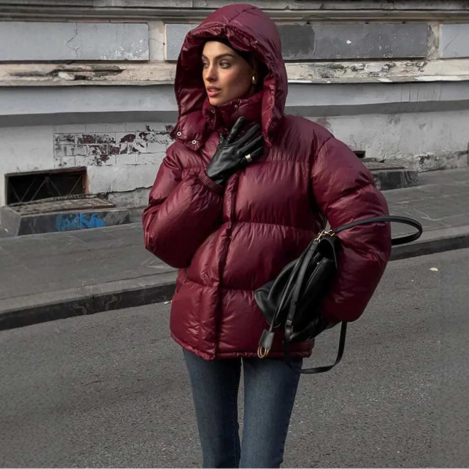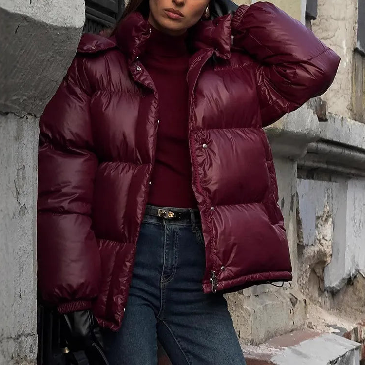 Odkryj doskonałe połączenie stylu i ciepła z tą burgundową kurtką puchową, idealną na chłodne dni. Jej błyszczące wykończenie dodaje elegancji, a lekka izolacja zapewnia wygodę bez zbędnego obciążenia. Doskonała do miejskich przygód i codziennych sprawunków, ta kurtka to niezbędny element każdej zimowej garderoby, który pozwala zachować ciepło i modny wygląd. Podnieś swój styl i bądź gotowy na każdą okazję w tej wyjątkowej kurtce puchowej.