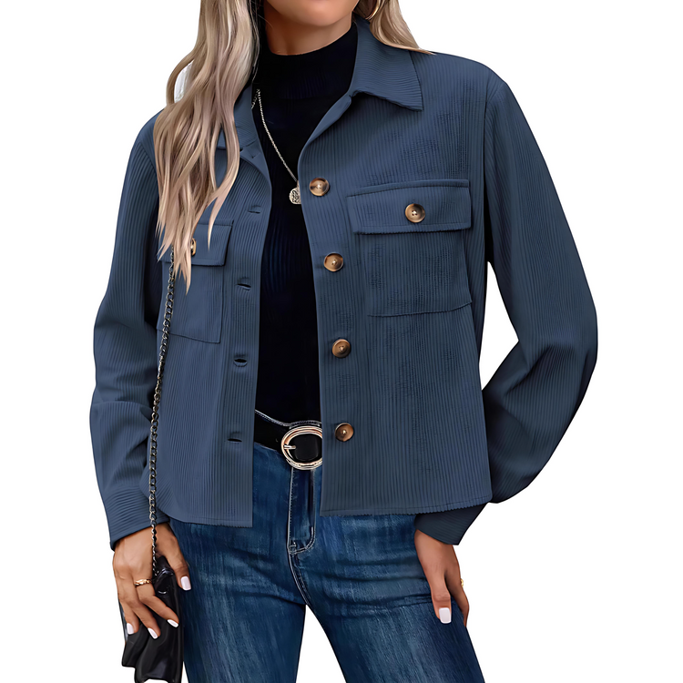 Damska kurtka sztruksowa - Kieszenie na piersi - Stylowa i wygodna odzież na co dzień