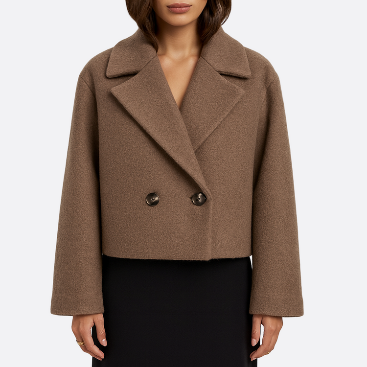 Ta elegancka damska kurtka z wąskimi klapami i dwurzędowym krojem łączy styl z wygodą, doskonale dopasowując się do sylwetki. Wykonana z miękkiego, strukturalnego materiału, jest idealna na chłodne dni, bez problemu łącząc się z sukienkami, spodniami czy codziennymi zestawami. Krótki płaszcz to wszechstronny element garderoby, który sprawdzi się zarówno w dniach roboczych, jak i na wieczorne wyjścia. Dodaj do swojej kolekcji modny oraz funkcjonalny akcent na sezon jesienno-zimowy.