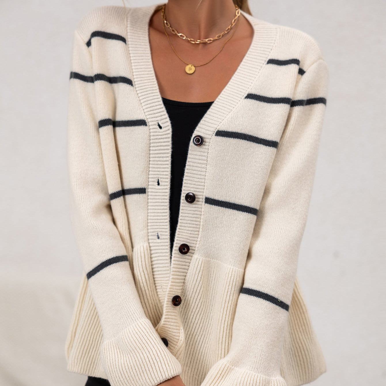 Damska - Luźny kardigan - Dekoltem w serek i peplum - Modny, wygodny styl - Idealny na każdą okazję
