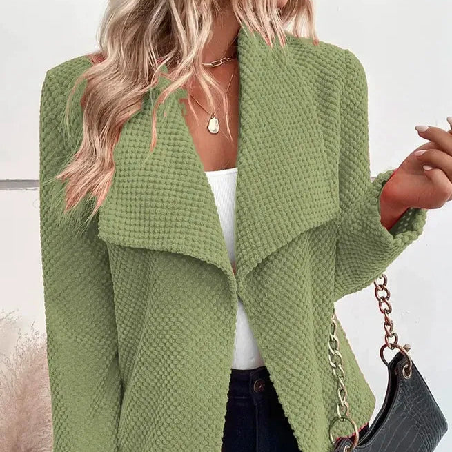 Damska - Marynarka dzianinowa o luźnym kroju - Teksturowany materiał - Modny dodatek na każdą okazję