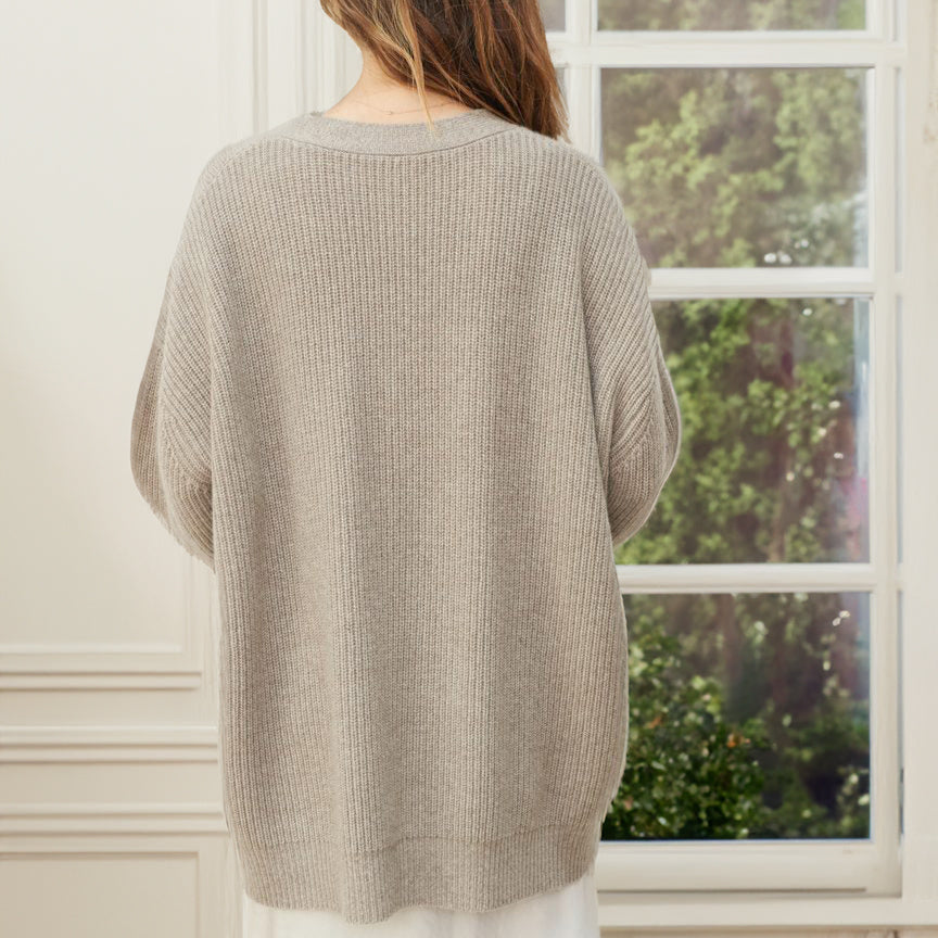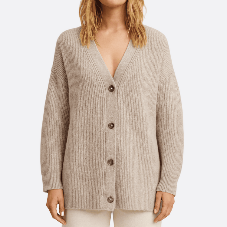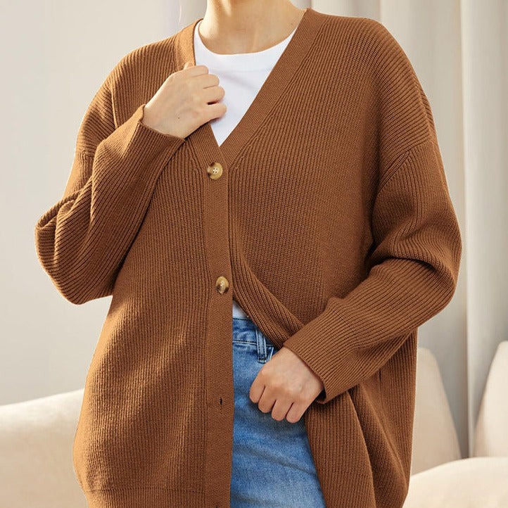 Damska - Oversizowy kardigan - Przytulna prążkowana dzianina - Modny wybór na każdą okazję