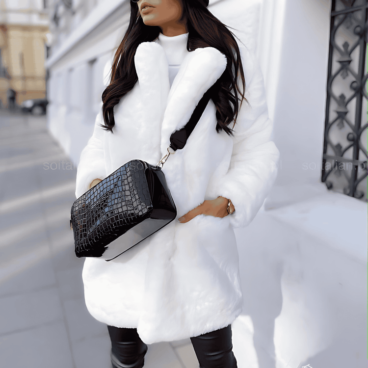 Ten damski, miękki płaszcz o kroju oversize wyróżnia się rozmytym, teksturowanym wykończeniem oraz klasycznym kołnierzem z klapami, co nadaje mu stylowy i uniwersalny charakter. Zapewnia komfort i ciepło, idealnie sprawdzając się zarówno w codziennych stylizacjach, jak i podczas eleganckich okazji. Luźny krój sprawia, że doskonale komponuje się z dżinsami lub dopasowanymi spodniami w chłodniejsze dni. Dostępny w różnych kolorach i rozmiarach, jest to must-have na każdą zimową garderobę.