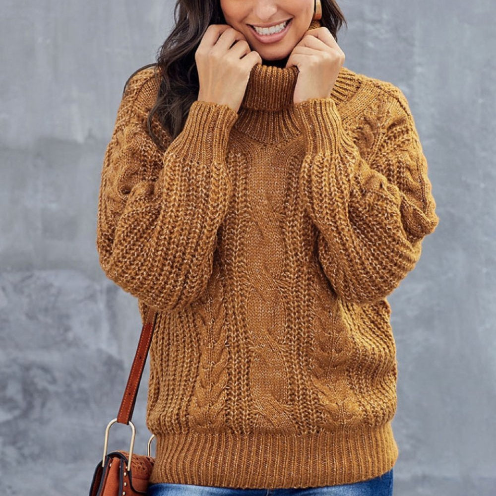 Damska - Oversizowy sweter z golfem z dzianiny - Komfortowy i stylowy - Idealny na chłodne dni