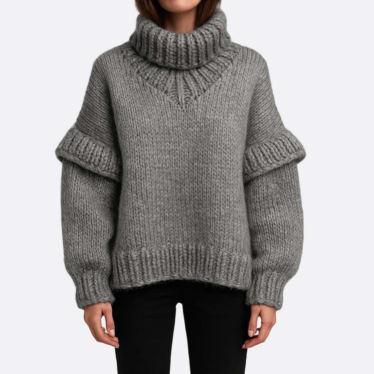 Damska - Oversizowy sweter z golfem z dzianiny - Miękkiej mieszanki wełny - Idealny na chłodne dni