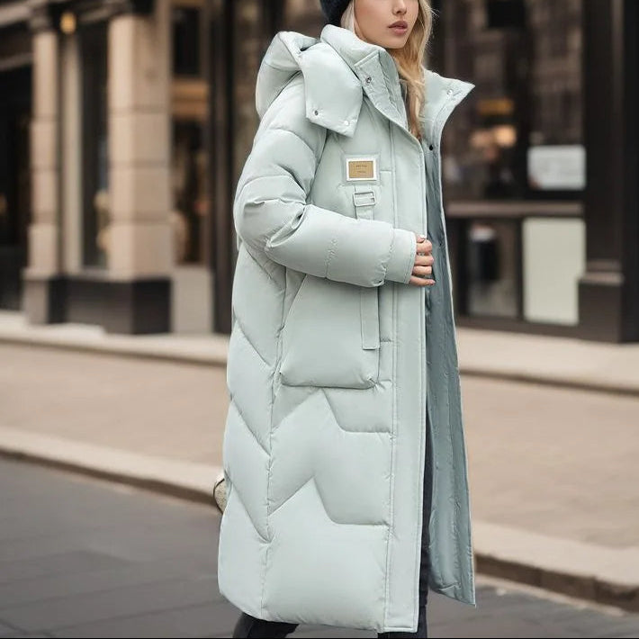 Ten ocieplany płaszcz maxi to idealne rozwiązanie na chłodne dni, oferujące pełne okrycie i bezpieczne zapięcie na suwak, które zapewnia maksymalne ciepło. Wbudowany kaptur chroni przed wiatrem i śniegiem, a nowoczesna sylwetka nadaje elegancki wygląd. Doskonały do pracy, podróży i codziennego noszenia zimą, ten długi wyściełany płaszcz łączy komfort z stylem. Dostępny w różnych kolorach, jest wszechstronnym elementem każdej zimowej garderoby.