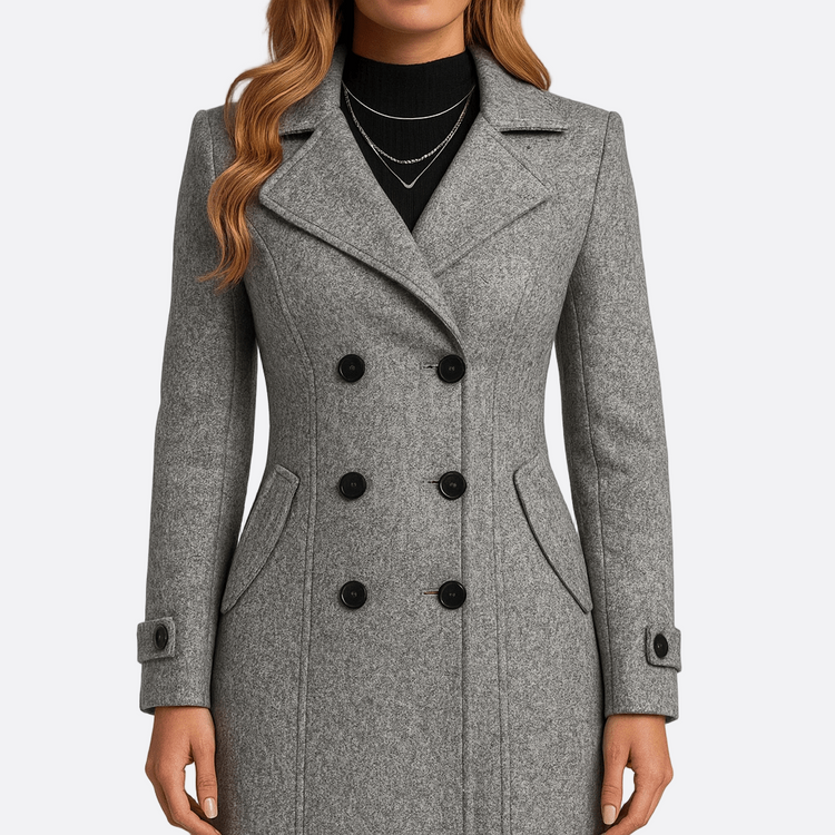 Damska - Płaszcz zimowy - Dwurzędowy - Długi rękaw - Idealny na chłodne dni