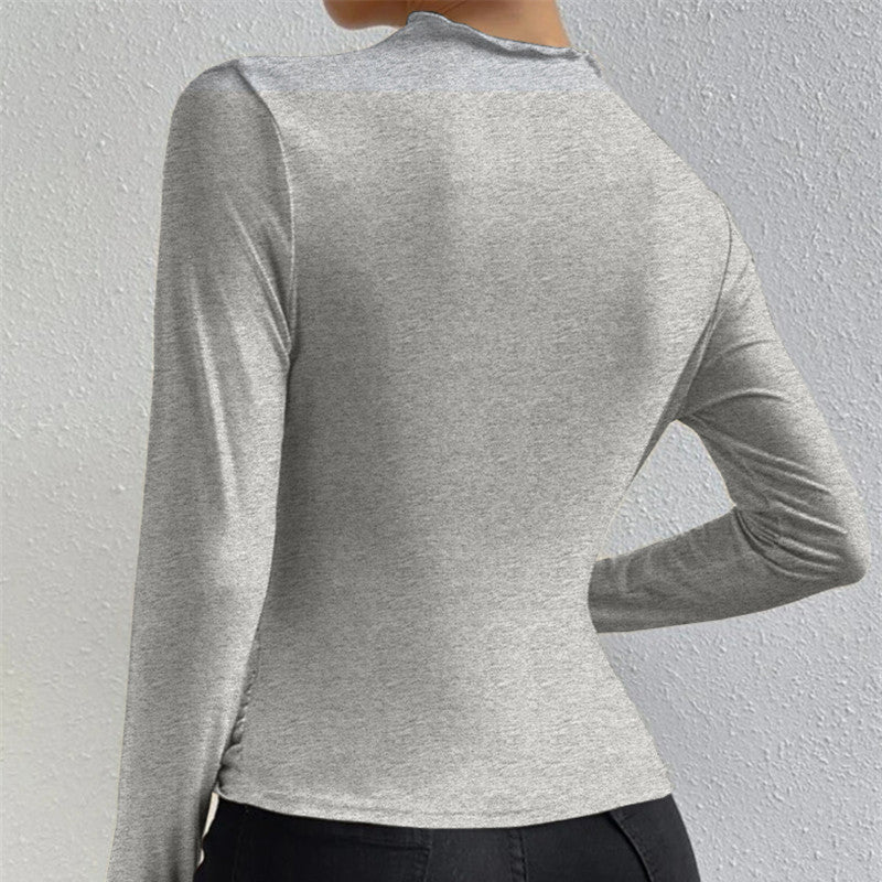 Damska - Plisowana koszula z długim rękawem - Elegancki krój - Modny styl na każdą okazję