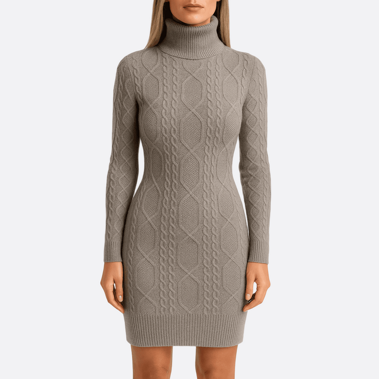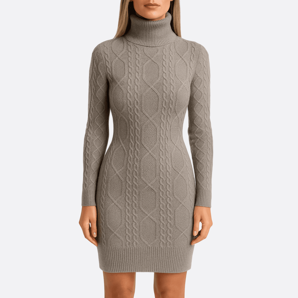 Damska - Sukienka midi dzianinowa z golfem - Stylowa i Komfortowa - Idealna na każdą okazję