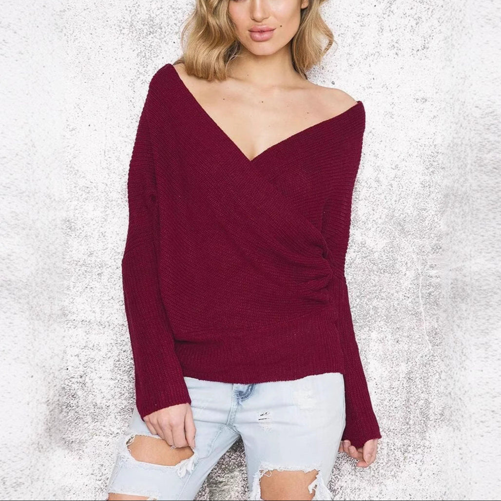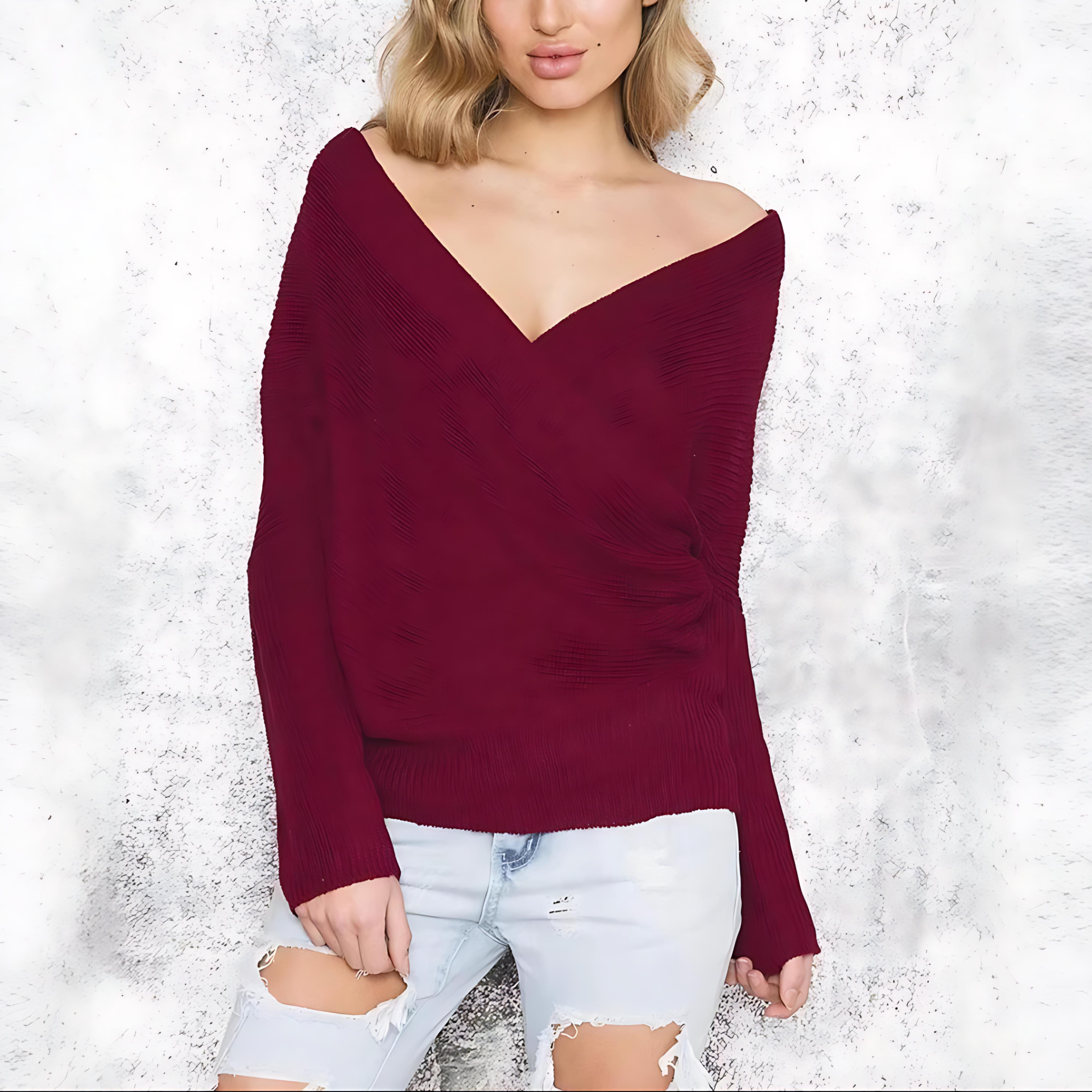 Damska - Sweter dekoltem w serek - Komfortowy materiał - Modny styl na co dzień