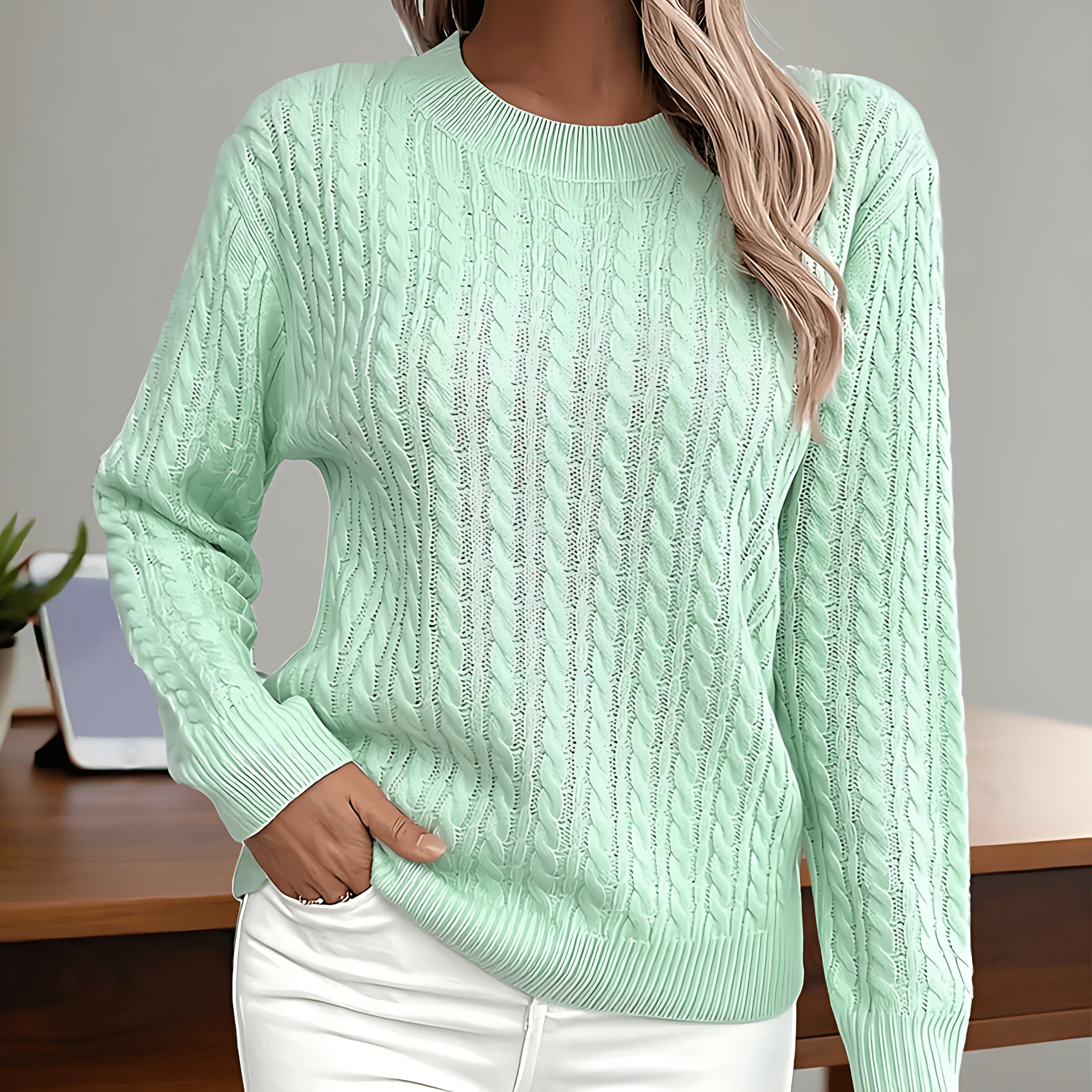 Damska - Sweter - Dzianina strukturalna - Stylowy, wygodny - Modny sweter na każdą porę roku