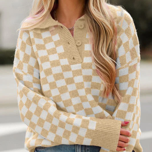 Damska - Sweter - Dzianina wełniana - Dekolt w szpic z guzikami - Modny i komfortowy