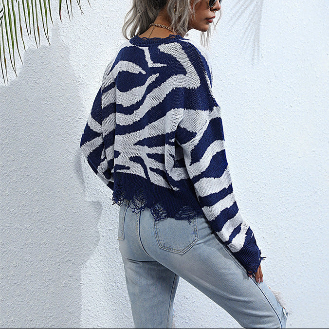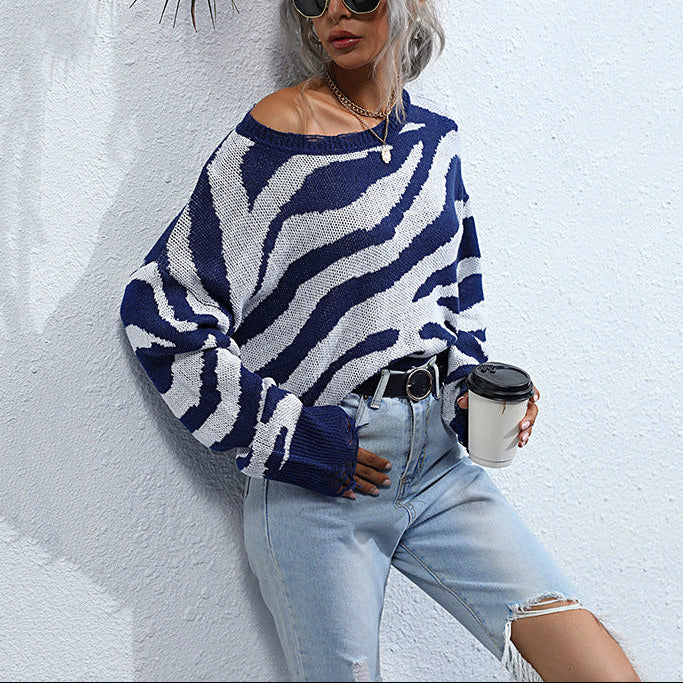 Damska - Sweter - Dzianina z nadrukiem zebry - Modny i stylowy - Idealny na każdą okazję