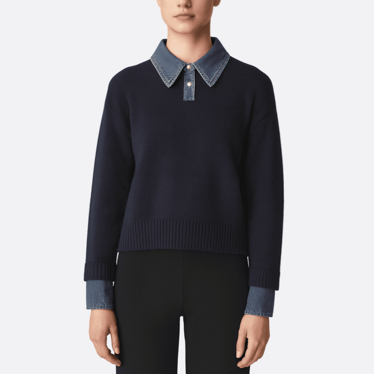 Damska - Sweter dzianinowy - Denimowy styl - Modny i wygodny sweter na każdą okazję