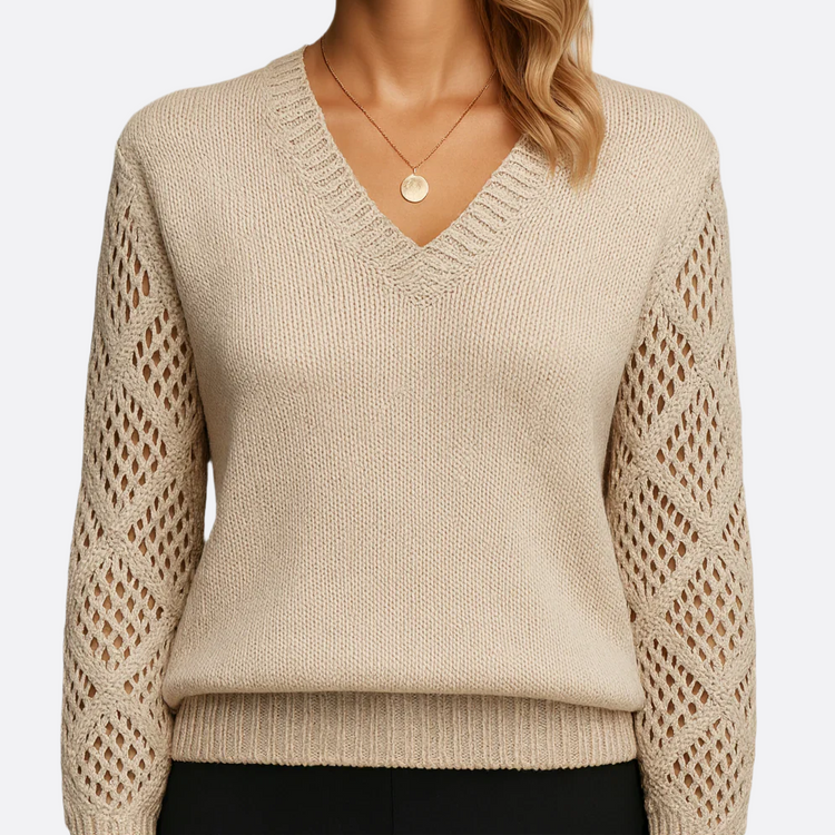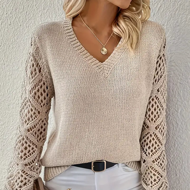 Damska - Sweter dzianinowy z dekoltem w szpic - Tkanina z domieszką akrylu - Modny i wygodny wybór