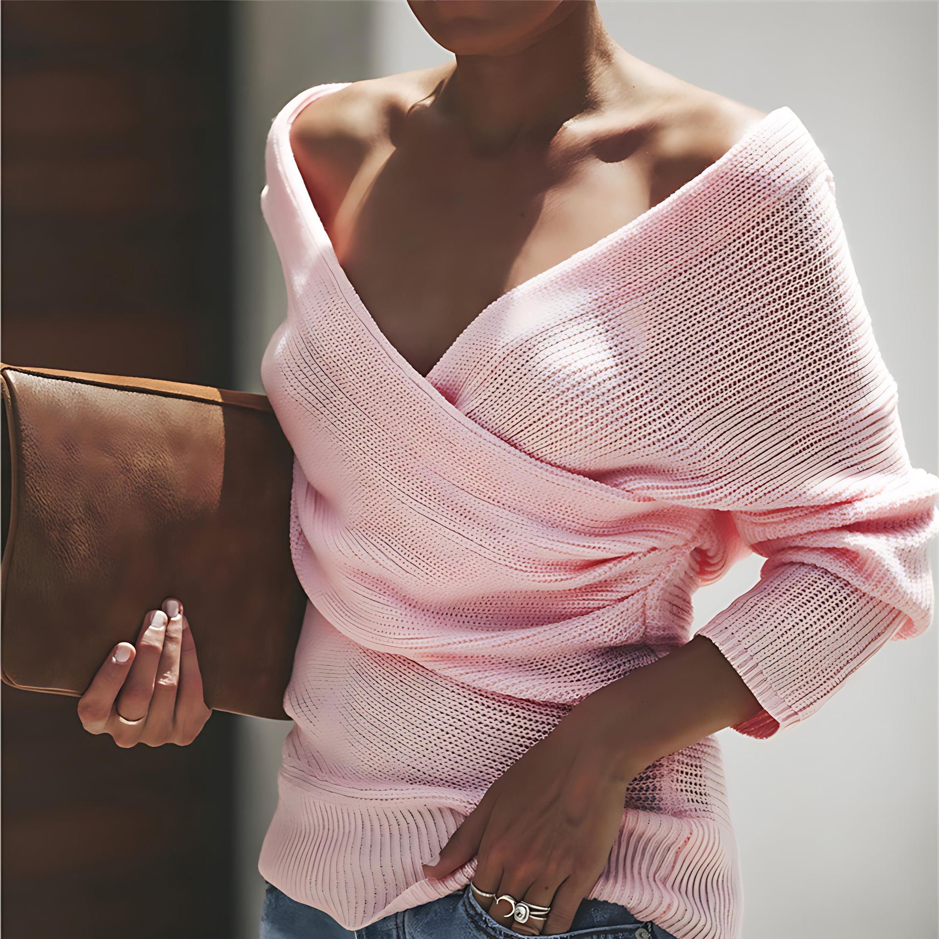 Damska - Sweter dzianinowy z głębokim dekoltem - Elegancki na co dzień - Modny wybór