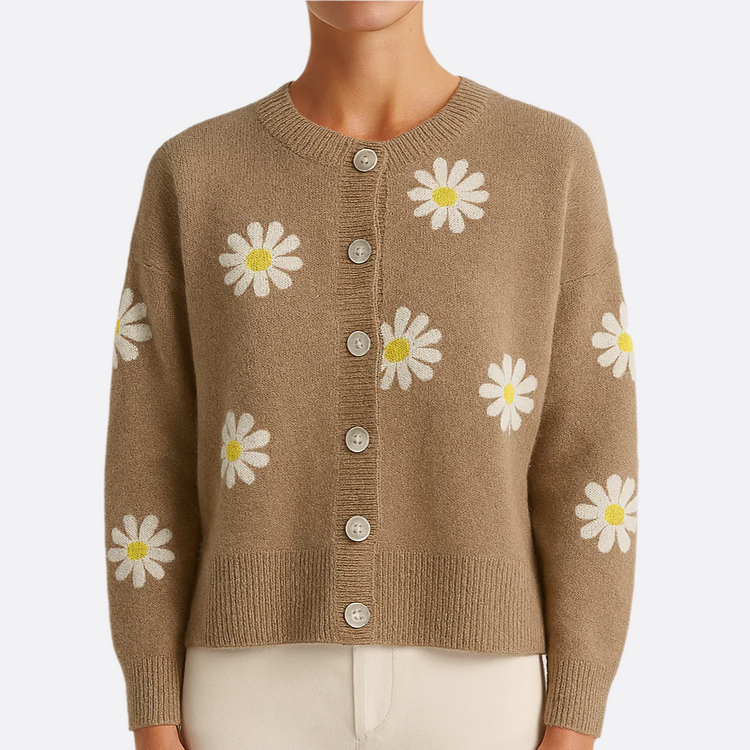 Damska - Sweter - Oddychająca dzianina - Dzianinowy sweter w kwiaty z długim rękawem - Stylowy i wygodny