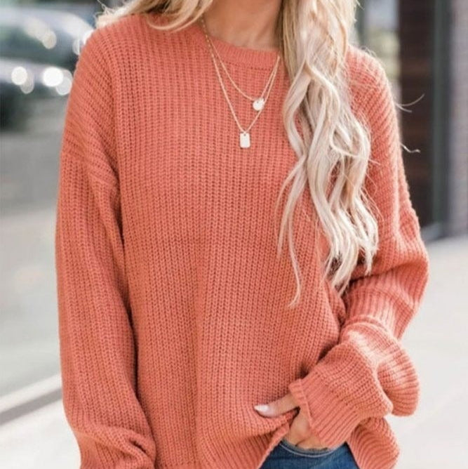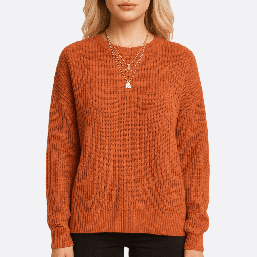 Damska - Sweter - Prążkowana dzianina - Luźny krój - Modny sweter na każdą okazję