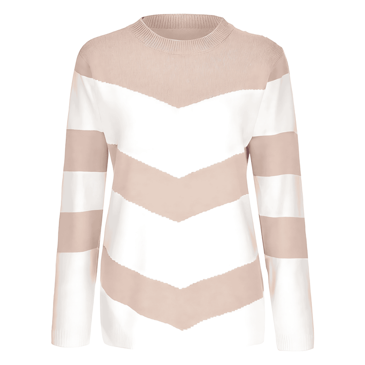 Damska - Sweter - Wzór w jodełkę - Okrągły dekolt - Elegancki i komfortowy styl na każdą okazję