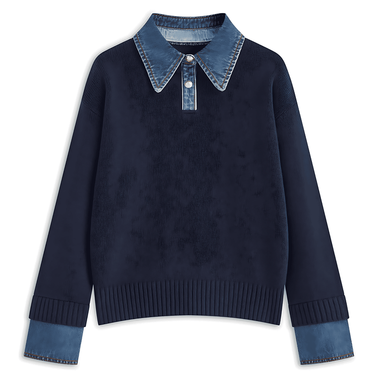 Stylowy sweter z dzianiny łączy klasyczne kolory z eleganckimi dżinsowymi akcentami, co tworzy idealny, warstwowy wygląd. Jego miękka, teksturowana tkanina z kontrastowym denimowym kołnierzem i mankietami zapewnia wygodę oraz nowoczesny styl. Luźny krój sprawia, że świetnie sprawdzi się zarówno na co dzień, jak i na bardziej formalne okazje. To wszechstronny element garderoby, który doskonale komponuje się z dżinsami, spódnicami oraz spodniami, oferując nieograniczone możliwości stylizacji.