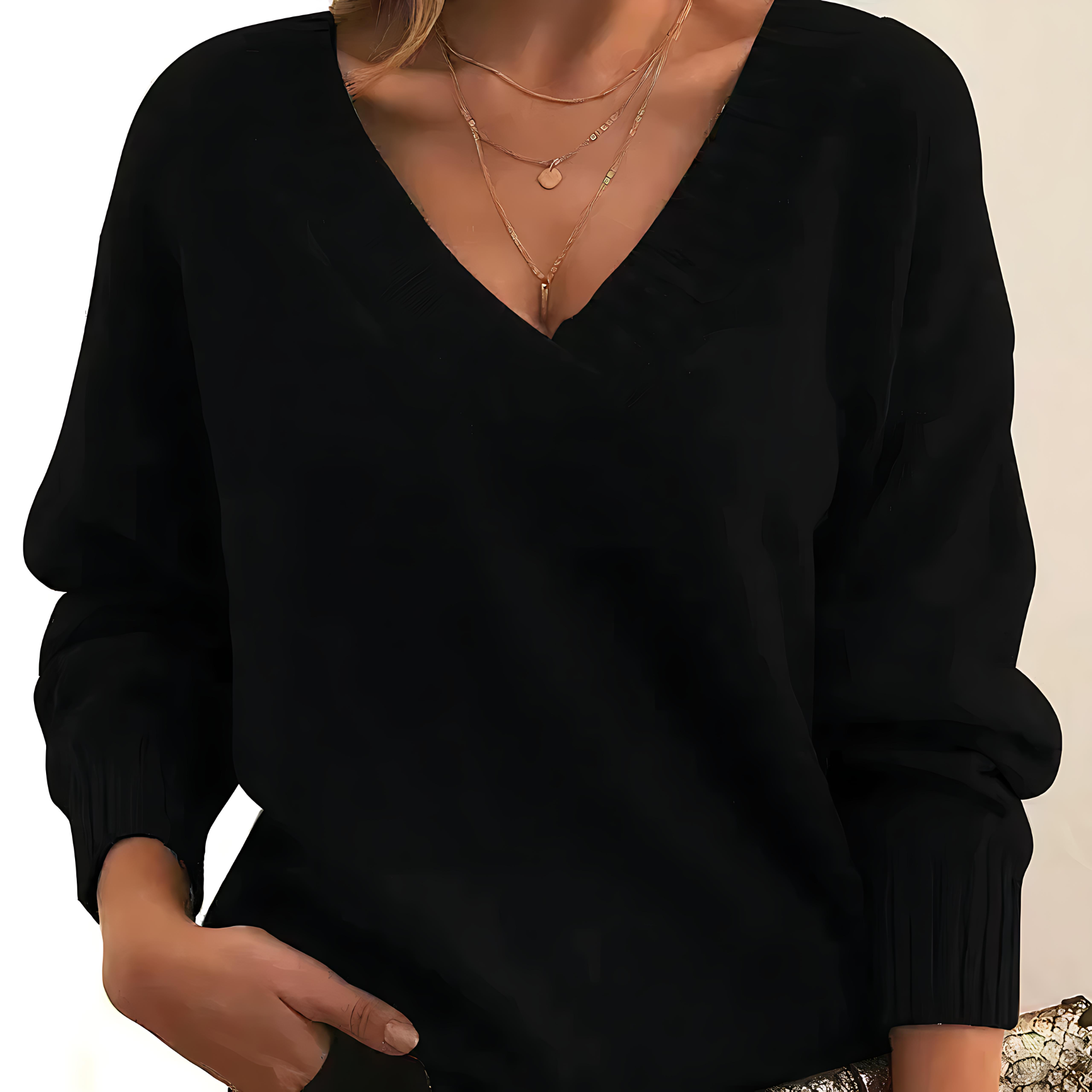 Ten damski sweter z dekoltem w szpic łączy klasyczny styl z codzienną wygodą, ma prążkowane mankiety i luźny krój z długim rękawem. Jego miękka konstrukcja zapewnia ciepło i sprawia, że idealnie nadaje się do noszenia warstwowego w chłodniejsze dni. Czyste wykończenie i ponadczasowa sylwetka pozwalają na ubieranie go z dodatkami lub noszenie na co dzień z dżinsami. Wszechstronny i łatwy w stylizacji, ten sweter jest podstawowym elementem garderoby zarówno do codziennych, jak i eleganckich stylizacji.