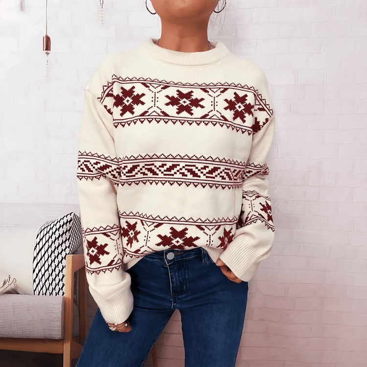 Damska - Sweter zimowy - Miękka dzianina - Śnieżny wzór - Stylowy sweter na chłodne dni